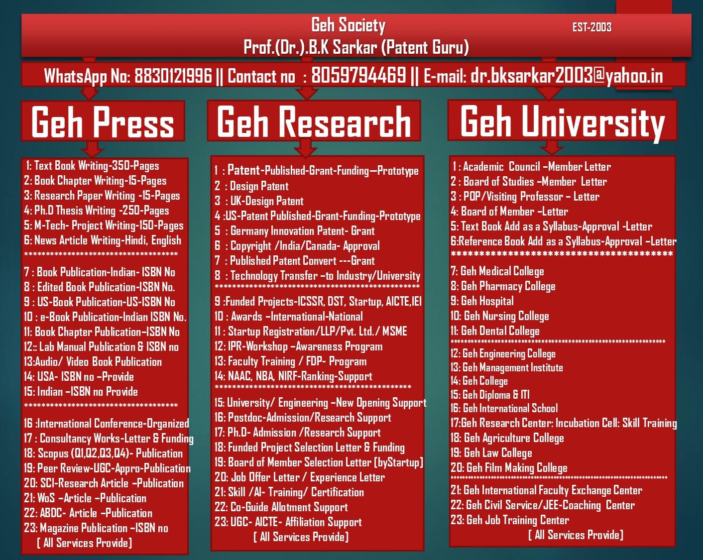 Geh University also provides several academic and non-academic facilities and services to students including a products development, technology Transfer, Startup Support, library, housing, sports facilities, financial aid and/or scholarships, study abroad and exchange programs, as well as administrative services.